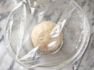 6:生地の表面を張るように丸めてボウルに入れ、ラップをかけます。