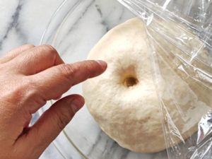 9:生地に指で押してみて、穴が戻らないようなら発酵はOK。