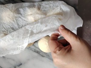 11:キッチンペーパーを濡らしてからしっかり絞り、生地の上にかぶせたら、15分休ませましょう。