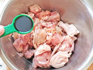 ![]() 2:ボールに鶏肉を入れ、先に砂糖と生姜をまぶしましょう。 |