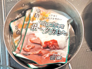 ![]() 8:鍋にお湯を沸かし、レトルトカレーを中に入れて、3分ほど放置しましょう。 |