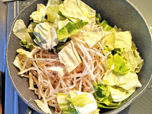 ![]() 4:シマチョウを取り除いた後のフライパンに、キャベツともやしを加え、キャベツが軽くしんなりするまで炒めましょう。 |