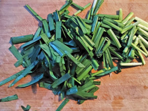 ![]() 5:ニラは、長さ5cmほどに切ります。 |
