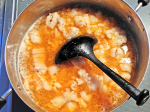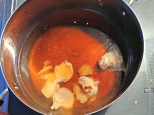 ![]() 7:少し大きめの鍋に、スープの材料を全て入れて火にかけましょう。 |