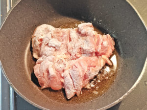 鶏肉は火が通らないと危険なので、焼き色が付いた後もしっかり目に蒸し焼きにしてください。