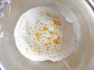 ![]() 2:レモンの皮のすりおろしを加えてさっと混ぜましょう。 |