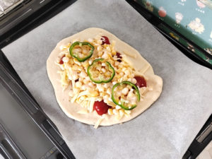 | 【オーブンで焼く】 オーブンを最大温度に設定し、8~10分焼きましょう。 ※我が家のコンベクションオーブンでは、300度に設定しましたが、一般的なオーブンなら240~250度だと思います。 |