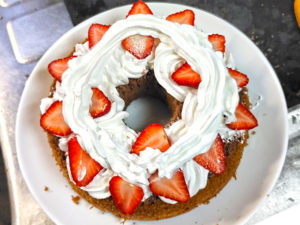 母の日なので、母が好きなシフォンケーキにデコレーションしてみました。ホイップクリームはアマンディーヌの冷凍にして、苺を飾るだけですが、好評だったレシピです。