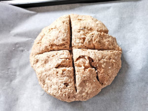 発酵の時間がないので、成型後すぐに焼けるソーダブレッドです。全粒粉入りでヘルシーですが、大きいのが焼けるので、食べ過ぎには注意!素朴な味がします。