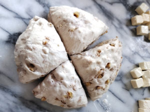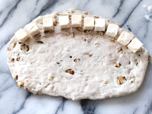 クルミとブルーチーズをたっぷり使った、パンです。スクエア型に巻いて形を作り、食べる時には4分割できます。スタンドミキサーがあると、簡単です。