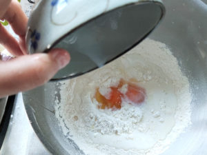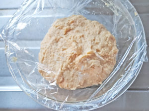 ![]() 5:生地を別のボールに移し、できれば一晩置きます。 ※少なくても7時間以上は冷蔵庫で保管します。 |