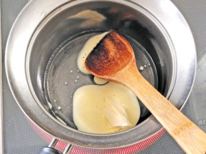 カラメルは、残った分はお湯と一緒に温めると処理が楽です。