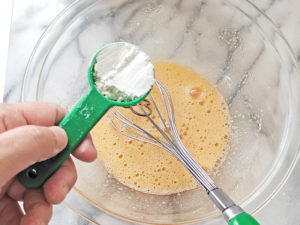 ![]() 8:薄力粉も大1ずつ加え、その都度混ぜます。 |