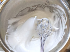 ![]() 4:ボールに卵白を入れて、角が立つまで泡立てましょう。 |