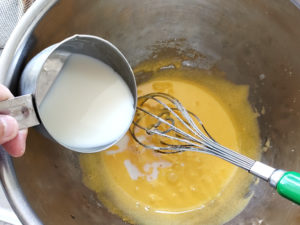 ![]() 6:残りの砂糖と牛乳を加えて混ぜましょう。 |
