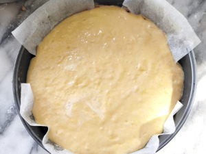 21cmのケーキ型にする場合は、分量を2/3くらいに調整してみてください。