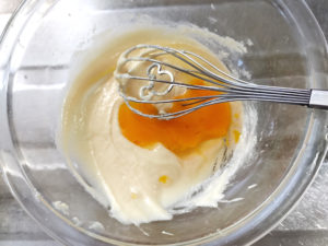 3:ボールに卵も加え、全体になじむまで混ぜます。