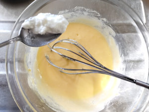 4:ヨーグルトをスプーン1杯ずつ加え、その都度よく混ぜましょう。