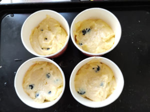 今回は、100均ダイソーの紙カップを使いましたが、専用のマフィン型を使う場合は、型にバターを塗るなりして、くっつかないようにしてみてください。