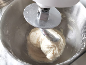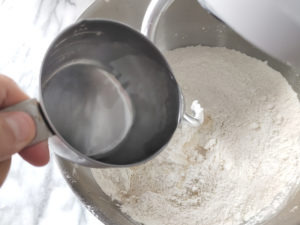 ![]() 2:水も回しかけ、ドゥーフックを付けて、低速で混ぜましょう。 |