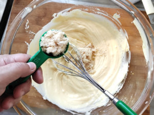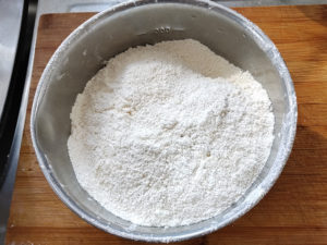 ![]() 2:薄力粉、ベーキングパウダー、アーモンドパウダーを大きめのボールに一緒にふるい入れましょう。 |