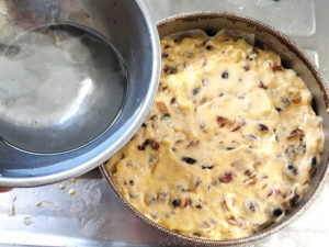 ![]() 6:ふるっておいた粉類の半量を耐熱ボールに加え、ゴムベラでさっくりと混ぜ合わせます。 7:ラム酒漬けのフルーツの水気を切って加え、残りの粉類を上に回しかけるようにしてから混ぜましょう。 |