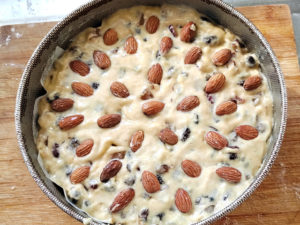 ![]() 10:半分にカットしたアーモンドを同心円状に広げ、軽く押し付けましょう。 |