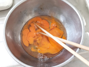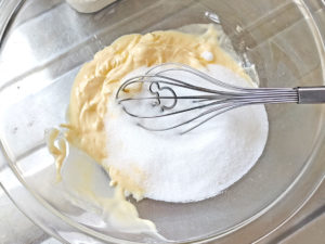 ![]() 3:卵と生地用のバニラオイルを別のボールに入れて溶いておきます。 |