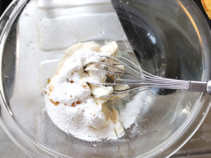 ![]() 9:耐熱ボールにクリームチーズを入れ、レンジで50~60秒ほど加熱して柔らかくします。 10:粉砂糖とクリーム用のバニラオイルも加え、クリーム状になるまで混ぜましょう。 |