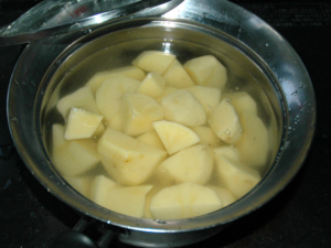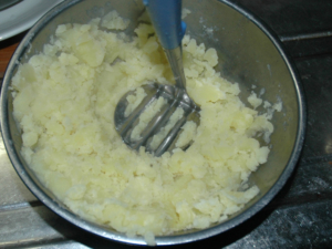 ![]() ⑤じゃがいもが柔らかくゆだったら、すぐに水気を切り、ボールに移してマッシャーなどで潰します。 |