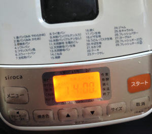 ![]() 3:ホームベーカリーにパン窯をセットしたら、食パンメニューで焼き始めます。 ※今回は、食パンの「みみ やわらかめ」をチョイスしました。 |