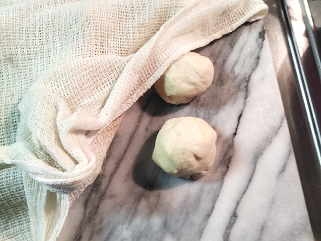 14:生地を12等分し、台の上に丸めたら、固く絞った布巾をかけ、15分ほど休ませます。