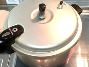 ![]() ⑥圧力鍋の重りがカタカタ言い出したら、火を弱火にし、10~12分加熱します。 ⑦煮えたら、室温に置き、蓋が取れるまで待ちましょう。 |