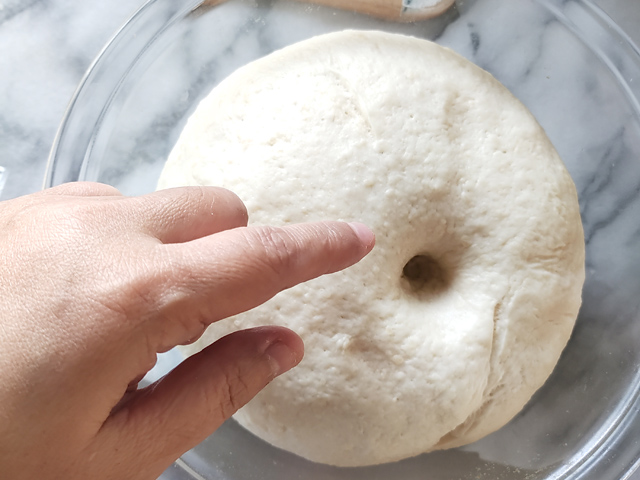 7:生地を指で押してみて、戻ってこないようなら一次発酵完了。