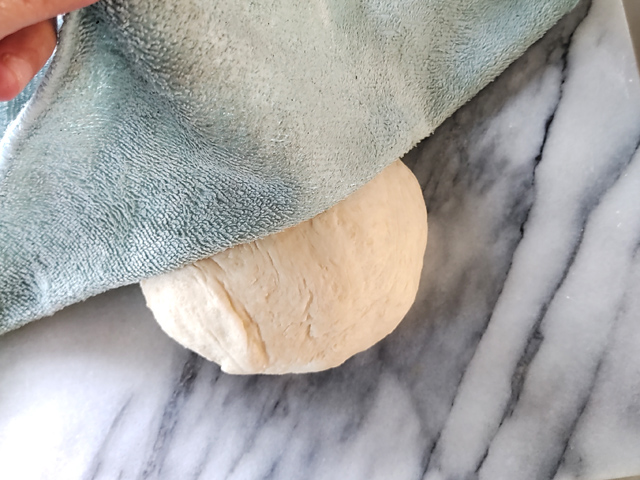 9:丸めた生地の上に、固く絞った濡れ布巾を置き、10分ほど休ませましょう。
