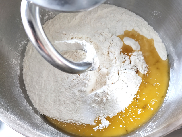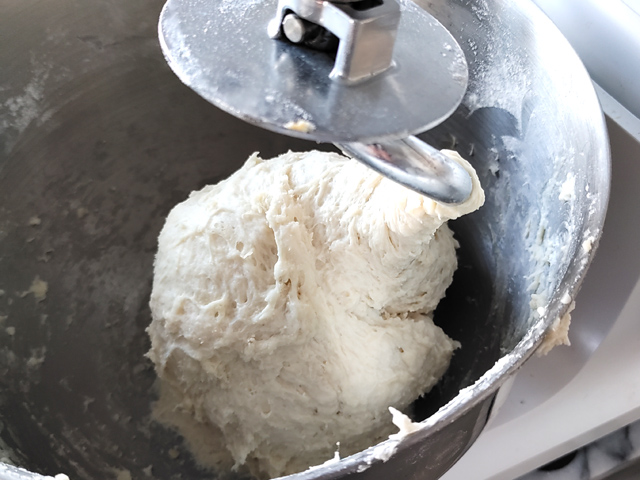 4:生地がドゥーフックに絡むようになったら、ミキサーの役目は終わりです。