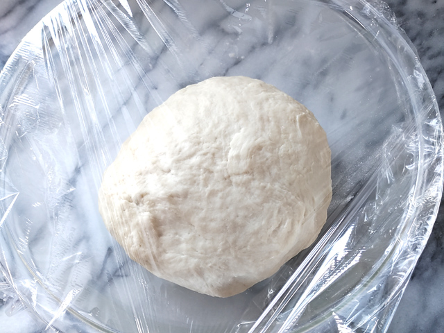 6:生地を丸め、耐熱ボールに入れ、合わせ目を下にして、ラップをして、35~40度のオーブンで60分ほど置きます。