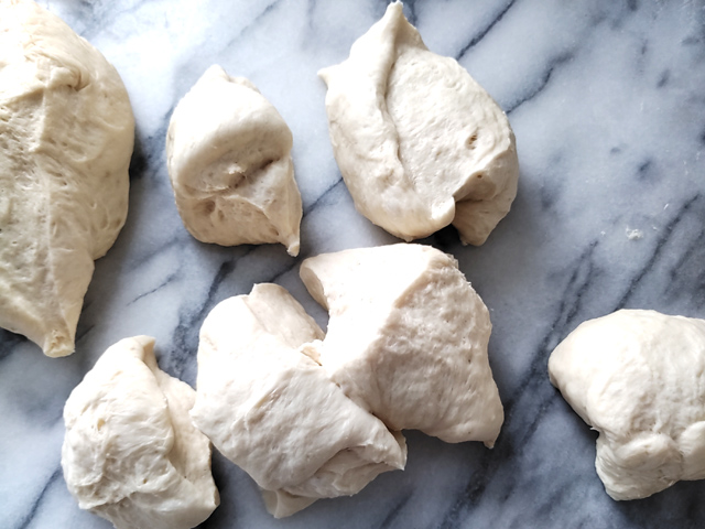 9:生地をパンチをしてガス抜きをし、12等分に分けます。