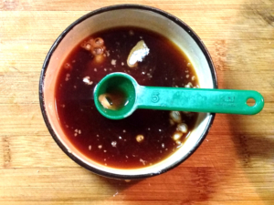 ![]() ③みりん、醤油、塩、チリソース、水、片栗粉は混ぜて合わせ調味料を作っておきます。 |