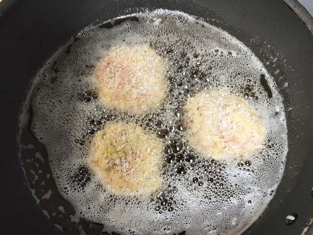 揚げる時には、中温で揚げて、温度が高すぎると破裂するので、火傷にも注意です。