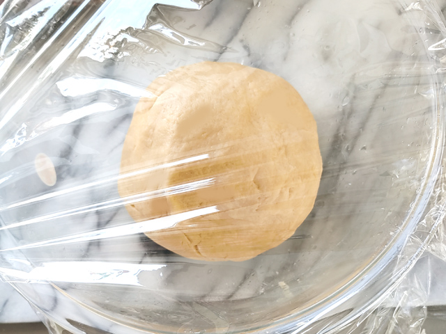 8:ボールに丸めた生地を入れ、ラップをして、35度のオーブンで60~90分置きます。