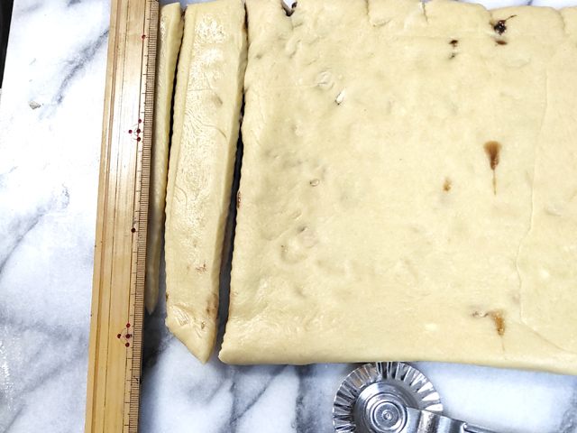 14:側面を、ピザカッターで12本の細めの長方形に切りましょう。
