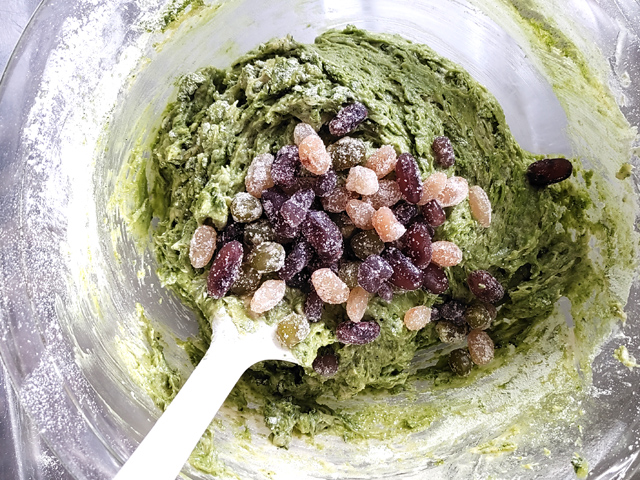 6:ボールに甘納豆も加えて混ぜ、全体に甘納豆が散ればOK。