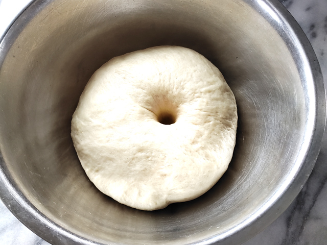 7:生地が2倍くらいに膨らみ、指を挿して、穴が戻らないようなら発酵完了です。