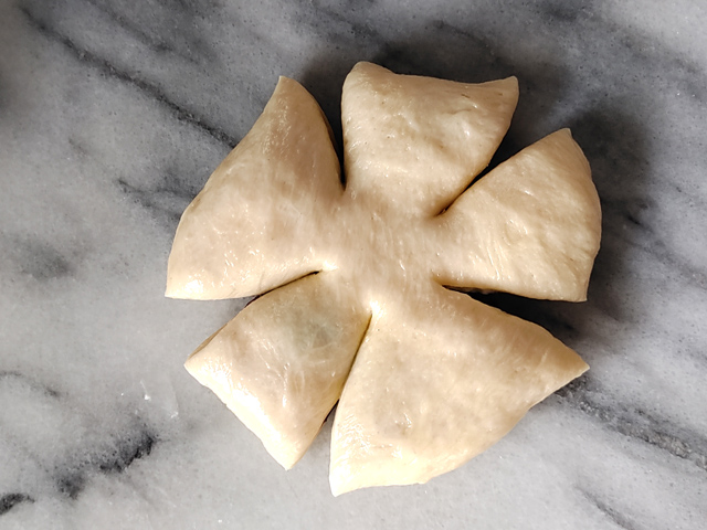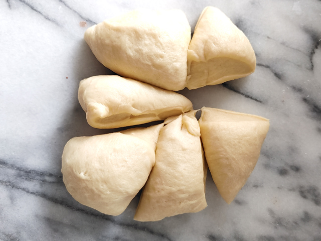 8:生地にパンチをしてガス抜きをしたら、生地を6等分に分け、それぞれ丸めましょう。