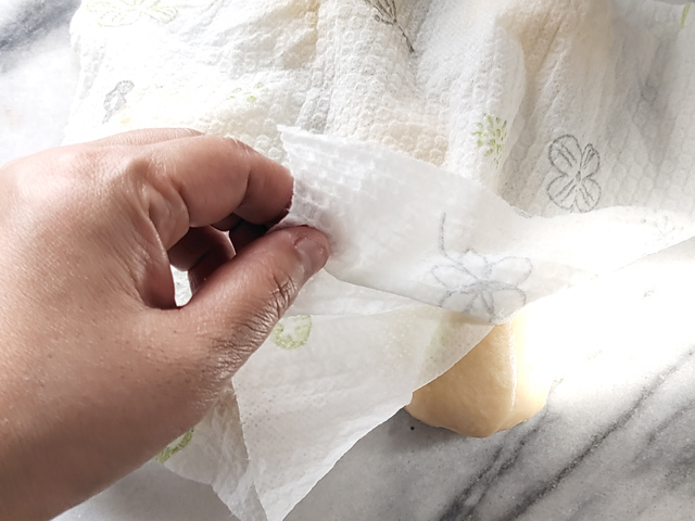 15:また固く絞った布巾をかけ、40度のオーブンで30分ほど置きます。