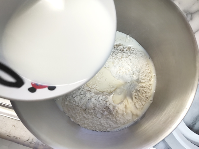 3:ドゥーフックを取り付けたら、低速で生地の粉っぽさがなくなるまで数分捏ねます。