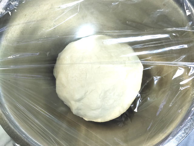 7:別のボールに生地を丸めて入れ、ラップをしたら、35度のオーブンで60分ほど、2倍程度になるまで置きます。