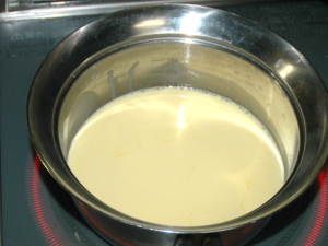 ![]() ②小鍋にバターを入れ、加熱して、沸騰寸前まで火を通します。 |