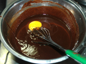 ![]() ⑤卵を1個ずつ加え、その都度良く混ぜます。 |